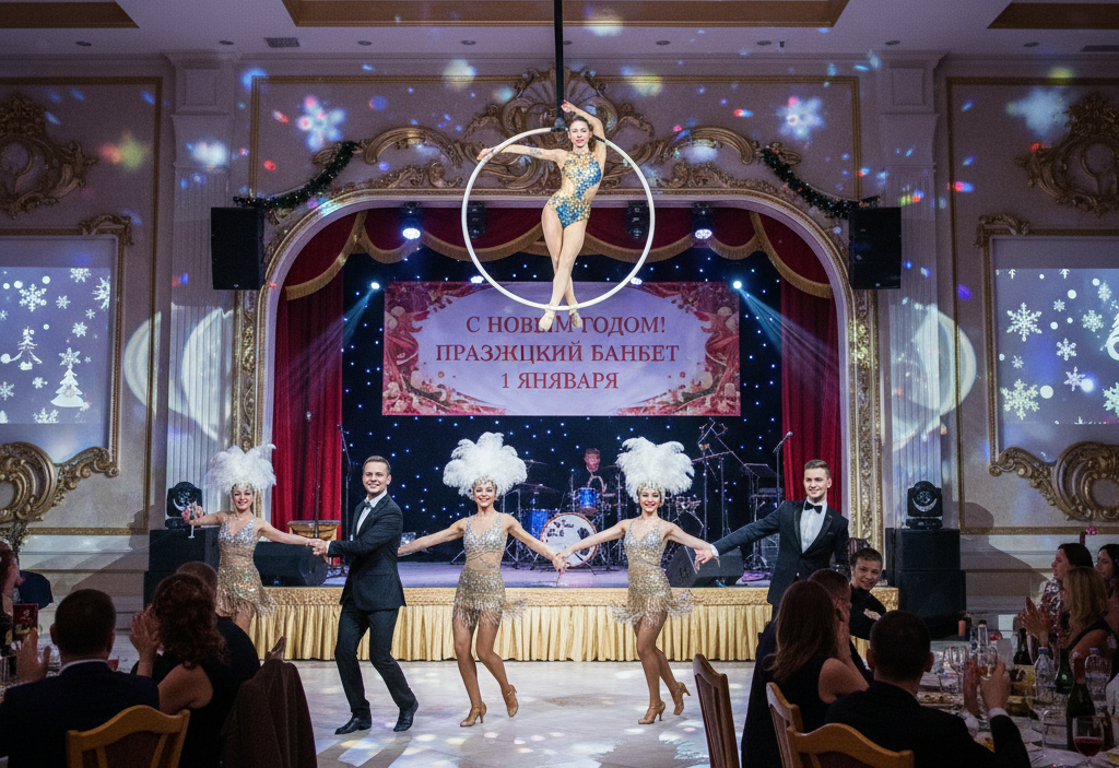 Праздник: Новогодний банкет с развлекательной программой 1 января.